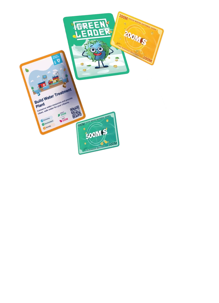 Inspire students and the public to learn Sustainable Development Goals with the Green Leader Educational Kit. This comprehensive kit includes educational resources, a cooperative game, and project ideas, empowering participants to make strategic decisions, allocate resources, and create the most sustainable city while balancing economic, environmental, and social needs.